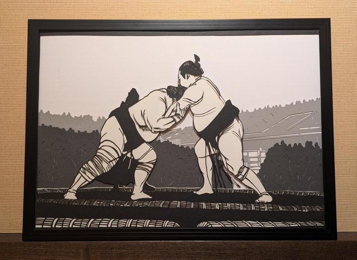 趣味で10年近く切り絵しております。 時には地元で切り絵講師として教えたり、ワークショップを行うなどの活動もしております。 写真は実家が相撲関係の仕事をしている繋がりから、依頼を受けて作成したものになります。