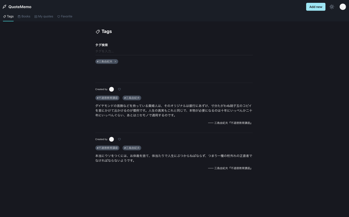 GoとReactで本の引用を管理するWebサービスを開発しました。