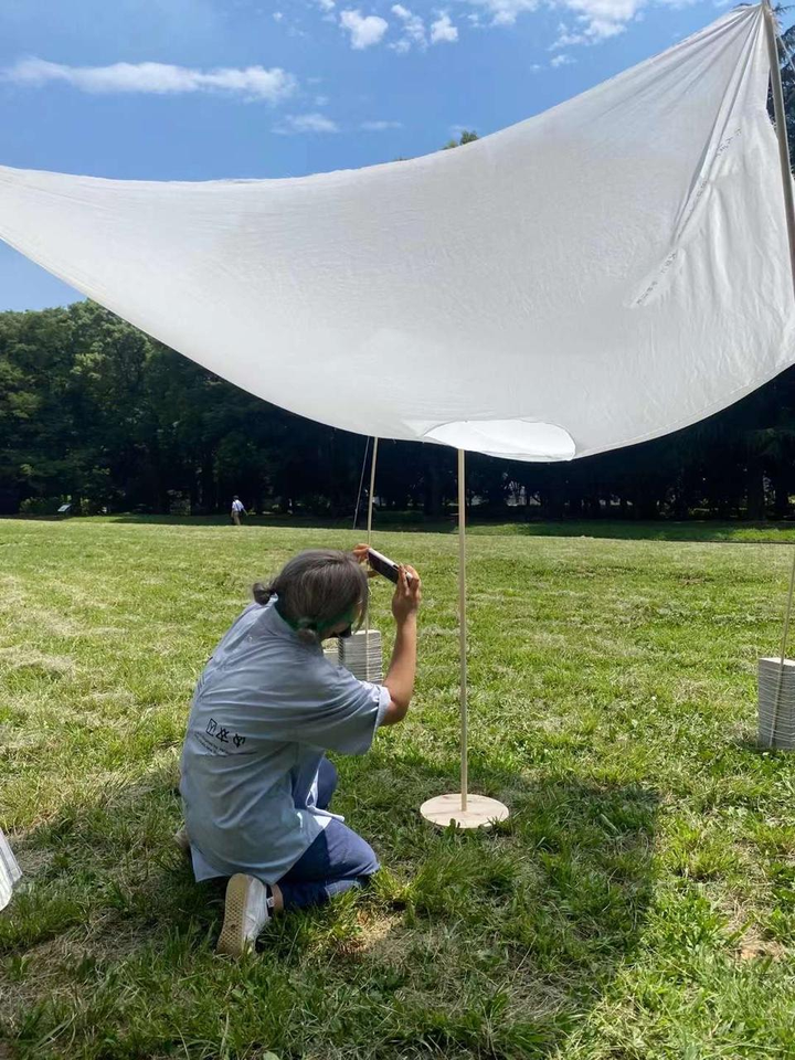 8/4(木)に昼間部2年生「インテリアデザイン2A」(担当: 髙平洋平先生)の最終課題講評会に、ゲスト講師としてデザイナーの原田圭先生(DO.DO.代表)をお招きし、学生たちの作品をご高覧いただきました。 インテリア空間の基礎・基本(考え方や捉え方)を学ぶ本授業の最終課題は「一輪の花を展示する空間」。 床・壁・天井に頼った空間ではなく、モノを「見立てる」構成で花の美しさを語れる場を設計する、という条件下でグループ制作を進めました。さらに、もの派の作家と作品を参考としながら、身の回りにあるモノを配置し、加工することでモノと空間の関係性を探求していきます。各グループで制作するのは3x3mの原寸大の展示空間で、展示台、キャプション、そして照明計画を立てるまでのケーススタディです。 私たちのグループがデザインしたスペースのテーマは「タンポポ」で、スローガンは「たんぽぽや 日はいつまでも 大空に」。