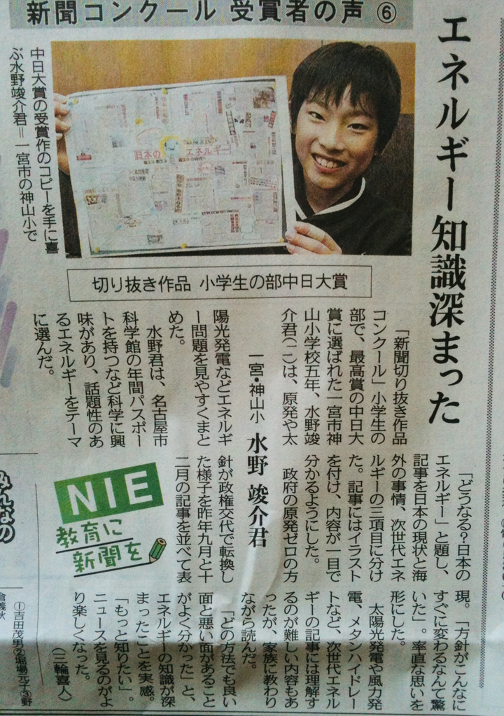 当時から興味を持っていたエネルギー問題について記事をまとめ、中日大賞(最優秀賞)を受賞しました。