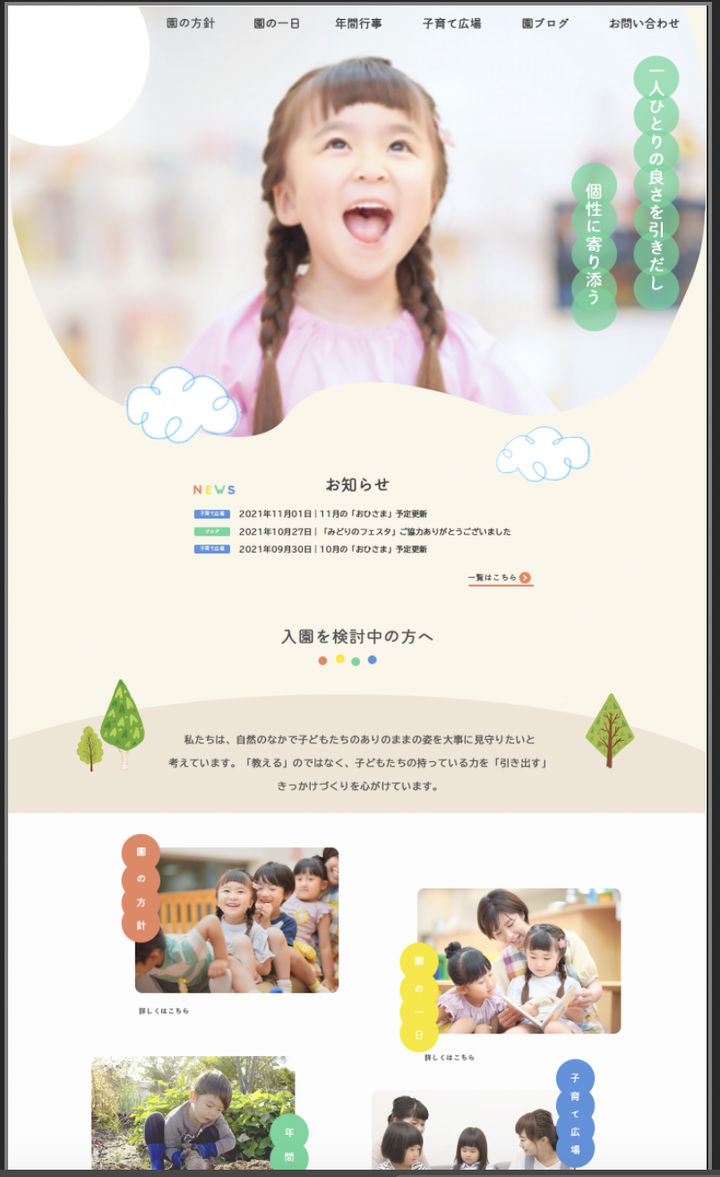 【デザイン】入園希望者の欲しい情報がわかる幼稚園サイト