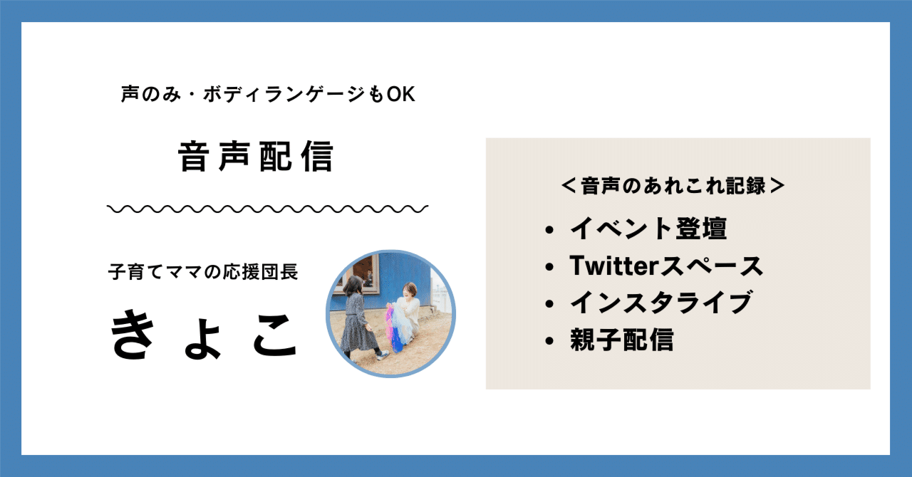 【2023年8月更新】 子育てママの応援団長きょことしてSNSでは、ママの応援をしています! 今後も「孤」育てで頑張るママ、自分は後回しにしてしまうママの人生を応援したい。 ママの価値観をアップデート→子どももイキイキする社会が最高だと思っています❤️🔥