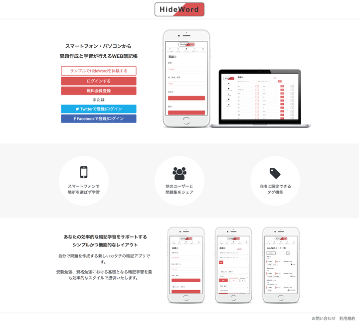 Closed 赤シート暗記帳をイメージして作成した学習サポートWebアプリ。 Ruby on Railsのキャッチアップの一環で作成。 全工程を自身で対応。