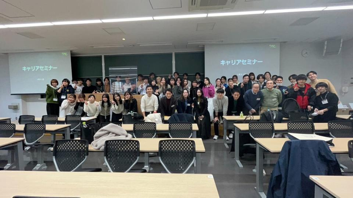 学生団体「TMC」でのセミナーの写真。 採用広報チームのリーダーとして、年間で20人の学生メンバーを集める子ことに成功しました!