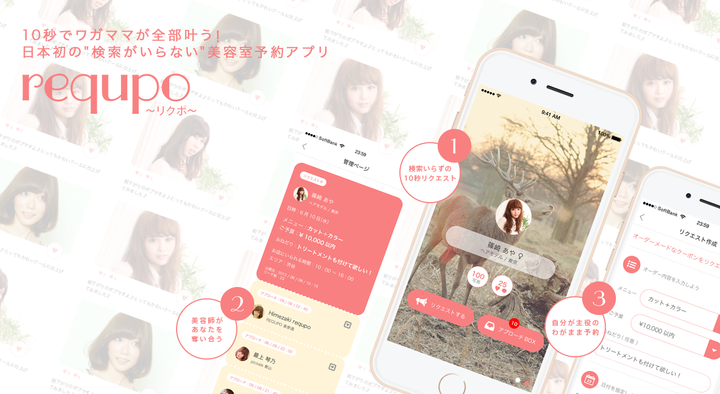 requpo( リクポ )は検索いらずで美容室の予約ができる、まったく新しい美容室予約アプリ。 美容師さんたちに自分の希望をリクエストすることで、あなたのわがままを全部叶えてもらえます。