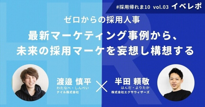 #採用変えれま10 vol.3に登壇し、「最新マーケティング事例から、未来の採用マーケを妄想し構想する」というテーマで、株式会社エクサウィザーズ半田さんとお話させていただきまいた。