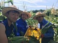 米・野菜・ワイン用のブドウなどをはじめとした農作物の収穫から、流しそうめんなどのレクリエーションまで、事務局として企画/運営に携わっていました。 写真はとうもろこしを収穫しているところです。笑
