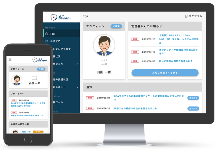 大手メガバンクの社員教育システム(以下LMS)を作成。 eラーニング・動画教育の実施や、社員研修の申し込みと管理が行えるシステムです。 そのほかにも、人事部がおすすめする教育コンテンツを学習できたり、部下がどれだけ学習を行なっているか確認できたり、教育資料などがWEB上でいつでも閲覧が可能です。 本プロジェクトでは、基盤となる自社システムの中身はできるだけ変更せず新たなLMSを再構築するため、UIのデザイン作成、UIや機能の提案・エンジニアとの調整・条件定義等を行いました。 使用ソフト:AdobeXD prott AdobeIllustrator