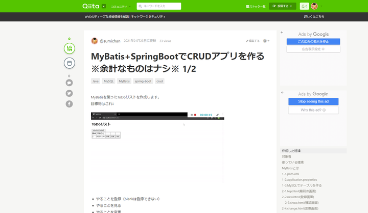 SpringBoot+MyBatisのCRUDアプリの解説記事