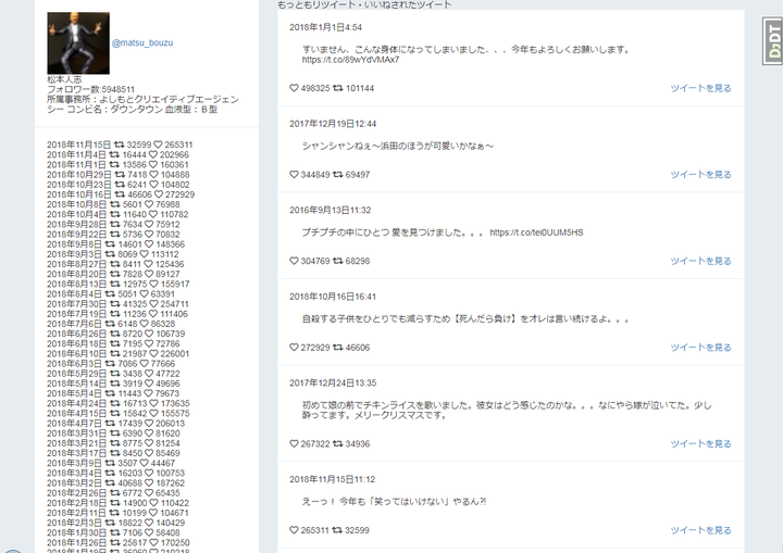 Twitterでの指定ユーザーにおけるいいね&リツイート数が多い順にツイート内容表示させたりチャート表示により可視化することで、他者に影響力のあったツイートを確認できるアプリ。 https://github.com/1shikawa/TopTweetsFinder/blob/master/README.md