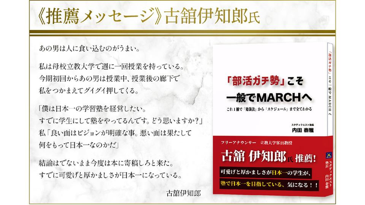 フリーアナウンサーの古舘伊知郎さんに、本の推薦文をいただきました。