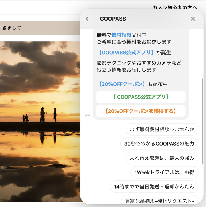 *従来はヘルプデスク的な扱いだった受身のチャットbot →顧客獲得やアップセルとして活用すべく、機材相談やクーポン配布などを含むよう再設計