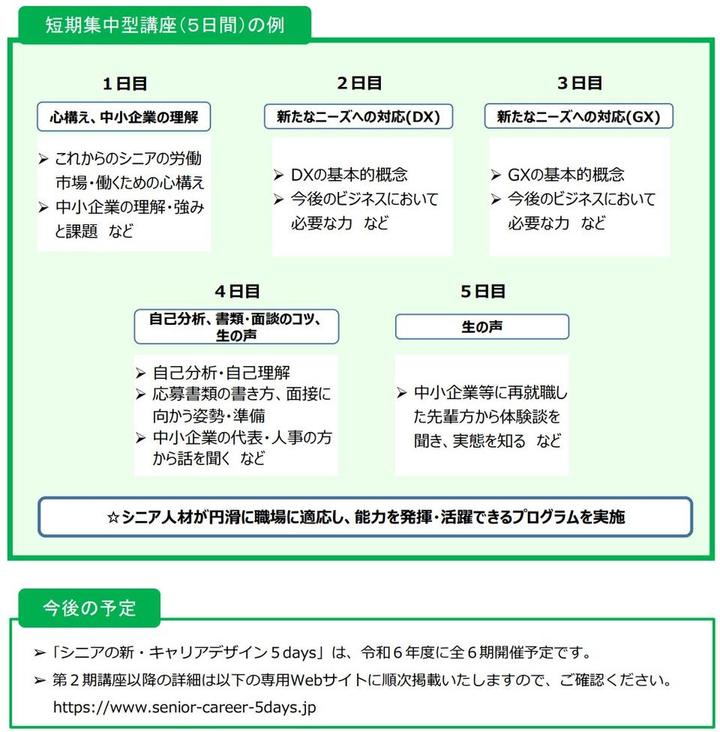 受講:新たな時代のニーズに対応するためのシニアの再活躍応援講座「シニアの新・キャリアデザイン5days」
