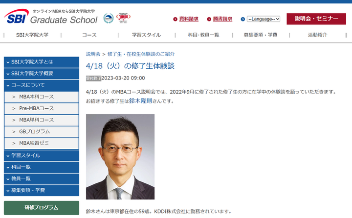 さてこの度、母校の入学希望者向けの説明会に登壇いたします。オンライン参加の受付はまだ間に合うようなので、皆さまのご子息、ご息女や、ご親戚、お知り合いの方でMBAに興味がございましたらお気軽にご参加ください。当日はオフレコ(笑)な話も披露しますので、大学院ウェブサイトのアーカイブ(録画)には残らないかもです…。 ご参加お待ちしております。どうぞよろしくお願いいたします! 日時:4月18日(火曜)19時から 会場:現地/オンライン開催