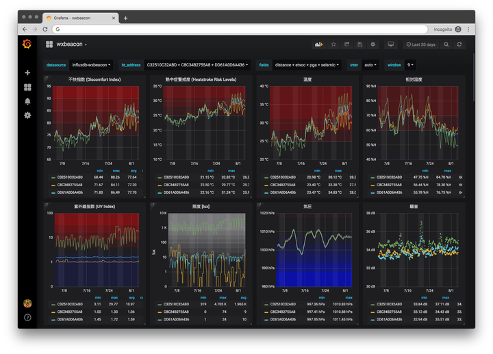 趣味の範囲であるが、自宅の室内環境をモニタリングするシステムを構築した。各部屋の状況をOMRON 2JCIE-BL01を利用して取得し、InfluxDBにデータを入れ、Grafanaで可視化している。