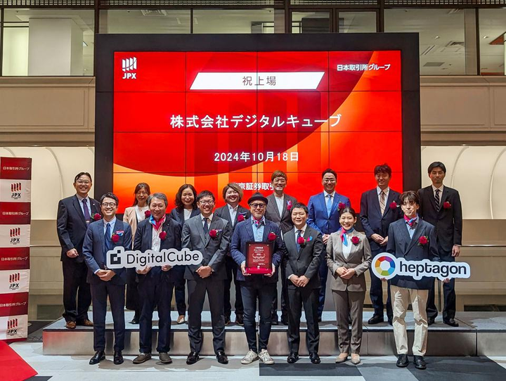 親会社・株式会社デジタルキューブが2024/10/18に東京証券取引所が運営する TOKYO PRO Market へ新規上場。ヘプタゴンの一員およびボードメンバーの一員としてこれに貢献しました。