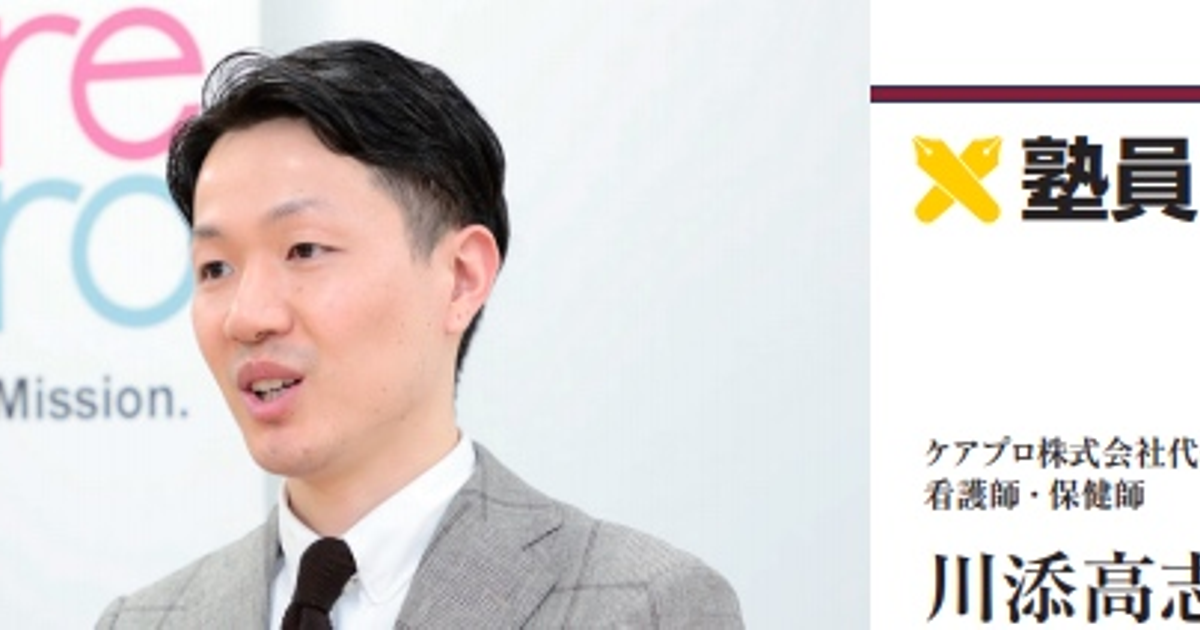 ケアプロ株式会社の代表です。予防医療(ワンコイン健診→セルフ健康チェック)、在宅医療(総合訪問看護ステーション)、交通医療(ドコケア、サッカーナース)を運営しています。よろしくお願いします。 http://carepro.co.jp http://dococare.com/ https://soccer-nurse.com/