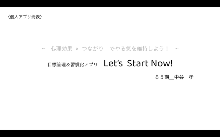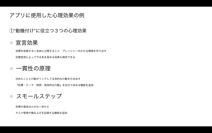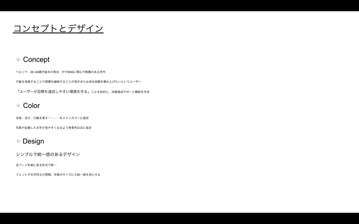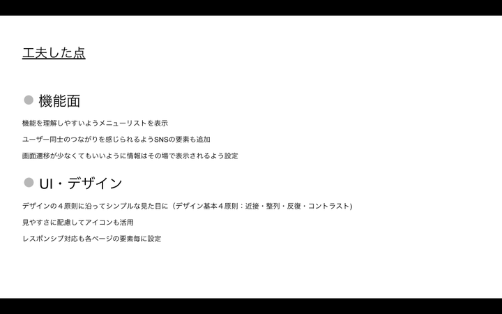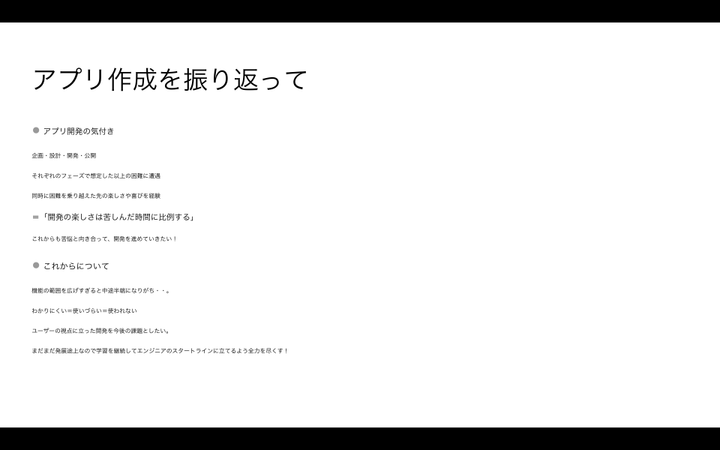 プログラミングスクール在学中に自主制作したオリジナルアプリの発表会の資料です。 アプリの内容やアピールポイントを記述しています。