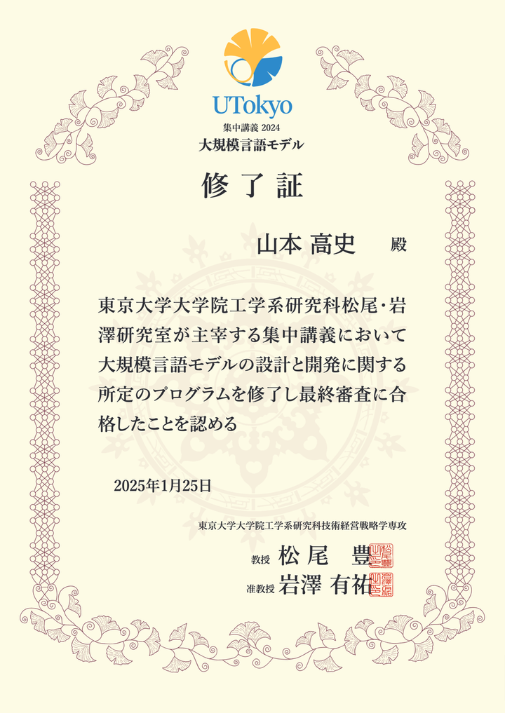 東京大学 松尾研 にて大規模言語モデル開発の基礎を習得。病気で物事を考え難い人向けの支援プロダクト開発にLLMを活用。