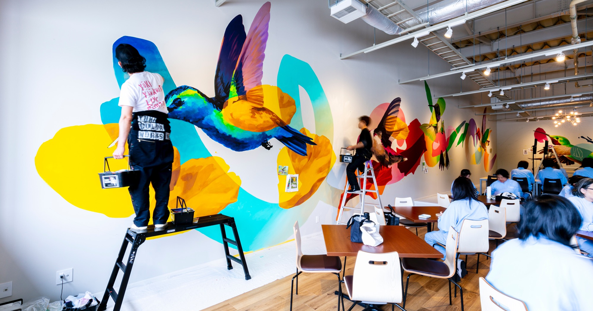 今、兵庫県で手掛けている壁画は、ナリス化粧品という会社の300席以上ある食堂。55mの壁に描く。しかも、食堂は稼働中なので、ランチどきは300名に囲まれてライブペイントショー。ここに至るまでの仕...