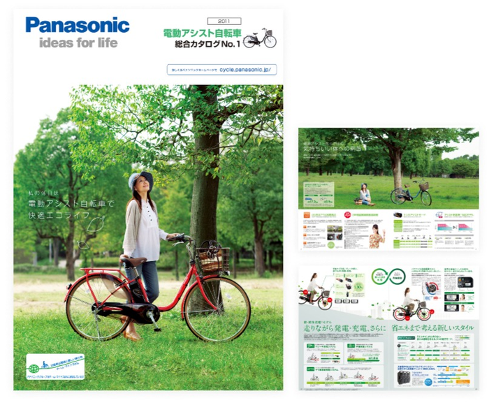 パナソニック電動自転車の年間総合カタログで、デザイン制作やDTPオペレーターのディレクション、メインページの撮影ディレクションなど、幅広く担当。