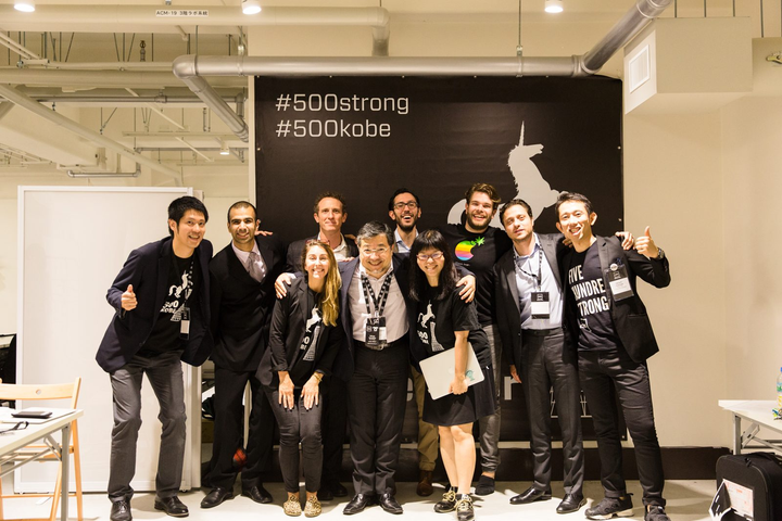 米国500 Startupsと連携し、米国から起業家や投資家を招へいして起業家育成プログラムを実施しています。運営チームとの写真です。右から一人目。