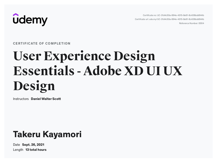 Daniel ScottのUdemyのオンラインコースで、実践的なUX / UIデザインを網羅的に学習。