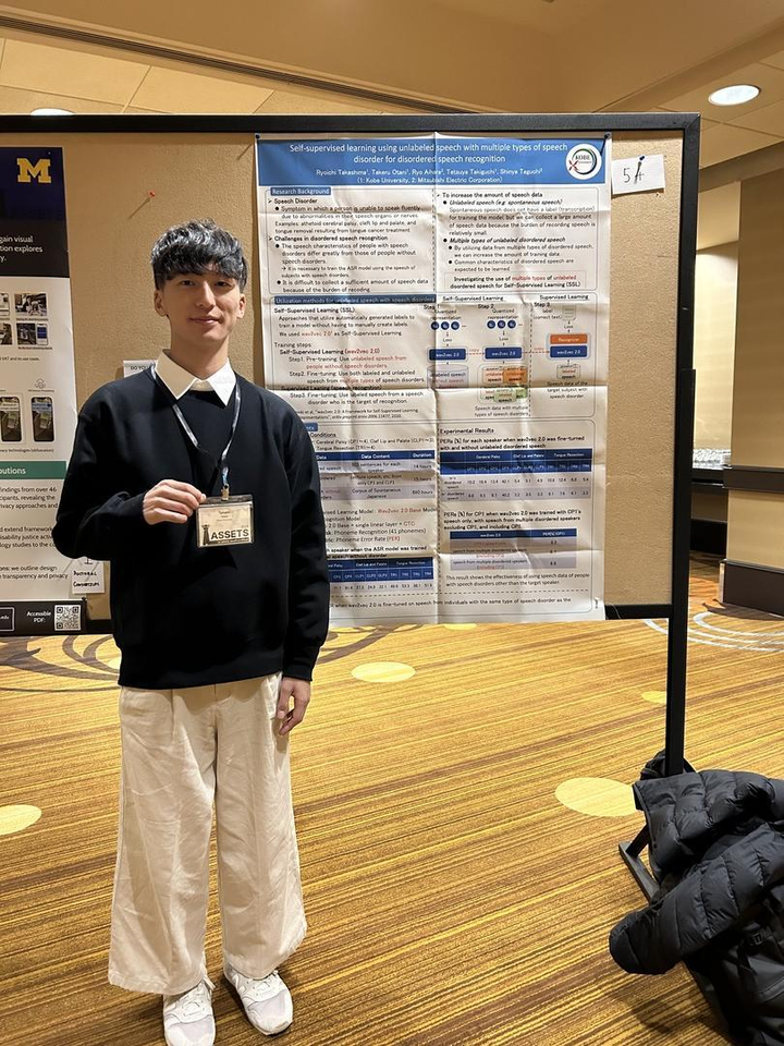 2024年10月にカナダ(セント・ジョンズ)で開催された国際会議、The 26th International ACM SIGACCESS Conference on Computers and Accessibility (ASSETS2024)に参加。Poster発表を行った。 「Self-supervised learning using unlabeled speech with multiple types of speech disorder for disordered speech recognition」