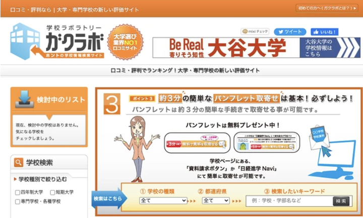 大学・専門学校の口コミサイト「ガクラボ」