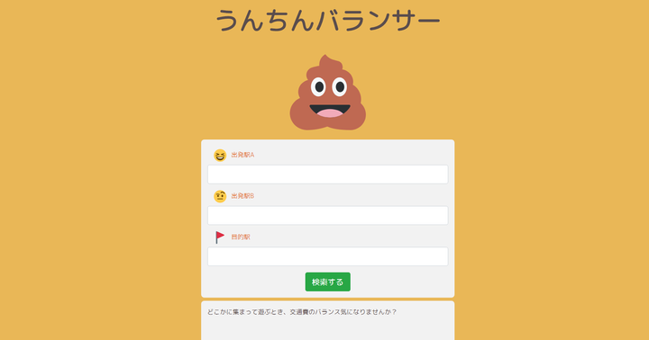 大渕 祐太郎千葉工業大学 / 工学部 情報通信システム工学科うんちんバランサー東京オープンデータを用いた2出発駅からの運賃のバランスを調べるサービス Vue.js(CND)+簡単なPHPunchi.tawn.work でさらに詳しく