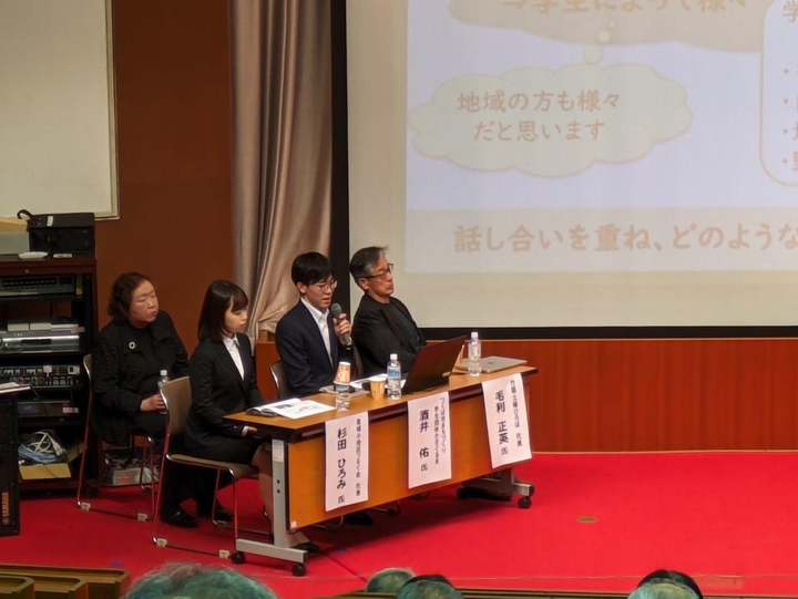 つくば市内の課題を探し、それに対する解決策を示すグループワークの授業をきっかけに、まちづくりサークルの設立に関わる。「ここが好きといえるまちを作る」を理念に、社会福祉協議会や地域住民と連携した多世代交流イベントへの参加や運営を行ってきた。 私は特に、広報担当としてインスタグラムを用いた情報発信を担ったほか、2023年10月には、つくばみらい市において、総合型スポーツクラブと連携した子供向け職業体験イベントの企画・運営責任者を担った(写真1右)。また、2024年2月には、社会福祉協議会からの依頼を受け、民生委員やつくば市内で地域活動に関わる方々100名以上の前で、今まで行ってきた活動を発表した(写真2中央)。