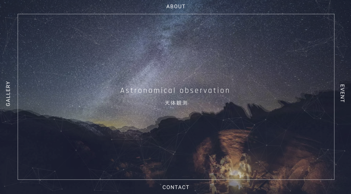 天体観測サークルの架空のサイトとして制作。ページ遷移とUIを通常時の縦長から逸脱した形を目指し制作。 【工数】 デザイン:2日〜3日 コーディング:4日〜5日