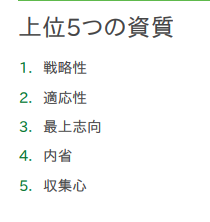 1年前にやってみた結果と、当時の振り返り(※後で書きます) >「流れに沿って進む」ことを好みます。「今」を大切にし、それぞれの時点で進む方向 をひとつずつ選択することにより、将来を見極めます(たしかにwwwテキトーです) 質問に答えてみた 1.戦略 質問 1. 独自の強みの洞察を読んだときに、どの語句、文言が印象に残りますか。 ↓ 盛り上げ、真に重要なものだけに注意、頭の中で解決案が具体化、最良の計画を選択、革新的な考えを生み出す 才能を信じています、最適な方法を見つけます、議論に新たな次元、話し言葉を効果的に用います 2. この洞察にあるすべての才能のうち、あなたが他者から最も認めてもらいたいと思う才能はどれですか? ↓ 「盛り上げ」 2.適応性 質問 1. 独自の強みの洞察を読んだときに、どの語句、文言が印象に残りますか。 ↓ この世界の素晴らしさや各人の良さを理解しようとしないで先を急ぐ人とは距離を 置きます:sore:、変化への対処に必要な柔軟性、人生で起こった良いことの成り行きを楽しむ、期日が迫ると苛立ちます(ぐわっ、融通の利かない期限や勝手に決められた期限に間に合わせるために働くのは苦痛(うおお!、1日にむりやり時間管理を課されるのではなく、変化を求めます(そうね… 予期できることよりもむしろ、変化や驚きがあって当然の環境に対応でき、そこに楽しみ(わかりみ、希望と期待に満ちた人生を送っています。 次に起こることを楽しみ、、決まった習慣や厳しい規則、予測のつく計画などの縛りがない時に、人生がより面白く感じられる 2. 「この世界の素晴らしさや各人の良さを理解しよう」 3.最上志向 質問 1. ↓ 新たに組織に加わった人や見知らぬ人と話をすることができます、そういう人たちを意識的に探します。 新しい知り合いができることは、あなたにとって喜びです、社交的で親しみやすい性格(根暗ですけどねw)、もっと長く時間を過ごしたいと考える人がたくさん(※妻はそう言わない…)、は本能的に、 自分は、何かするにあたって、今までにない革新的な方法を発明す る人間だと見ています、規定された決まり切った方法で物事を実行するように強制されると、活動にうんざりし飽きてしまいます(うぐぐぐぐぐ…、知り合いのネットワークを大きくすることの重要性を経験的に学んできた:、、自分がすでにうまくできることを継続的に訓練することで、より多くのことを達成 2. 「自分がすでにうまくできることを継続的に訓練することで、より多くのことを達成」