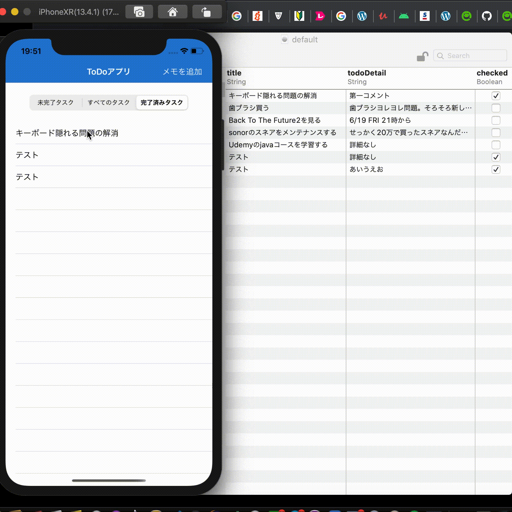 swiftで、Realmを学習したくてTodoアプリを実装しました。 また、このタイミングでUISegmentやUISwitchなど今まで触れた事のないUIの実装にも挑戦しています。 swiftで初めて自力でぐぐりながら実装したアプリです。