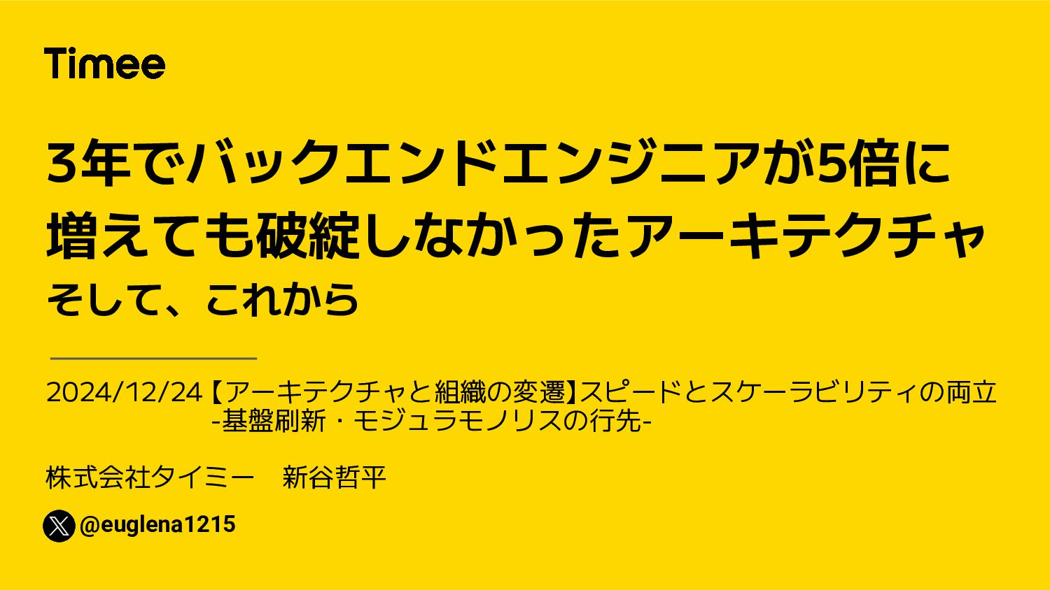 直接機能開発を行わず、バックエンド領域の色々を良い感じに進める担当です。 社会のインフラになるためにはシステムとして相当の可用性が求められ、タイミーを取り巻くマーケットとしては一段ギアを上げた開発が求められます。高水準での可用性と開発速度を実現するためにバックエンドでは何をすべきかを考えています。