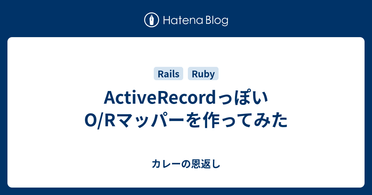 github.com ActiveRecordっぽいものを一度実装してみて本物と実装方法の違いを眺めるのが勉強になりそうだと思ったのでとりあえず作ってみました。 ついでにSQLite3のC言語APIをRubyで実行できるようにする拡張ライブラリsqlite3_coreも作りました。 ※記事中では読みやすさのために例外処理は省いています。 実装したのは以下のメソッドになります。 set_database(db_path, type) どの種類(type)のどこに保存されている(db_path)DBを利用するのか設定する。 TableClass.new(attribute) レコードオブジェクトを…