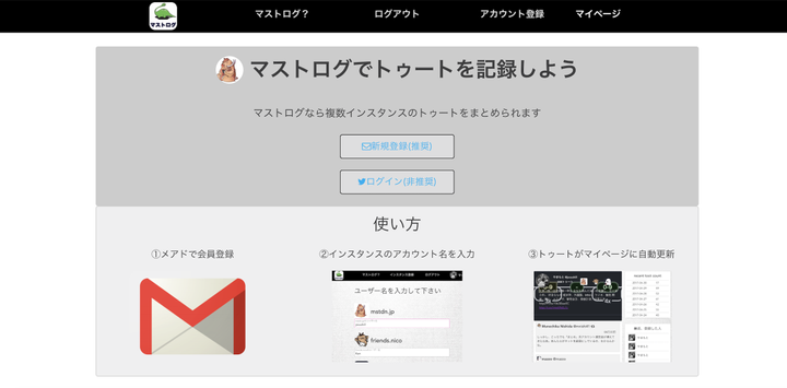 マストドンのインスタンス・アカウントを登録すると自分のトゥートをブログ形式で保存してくれるサービス
