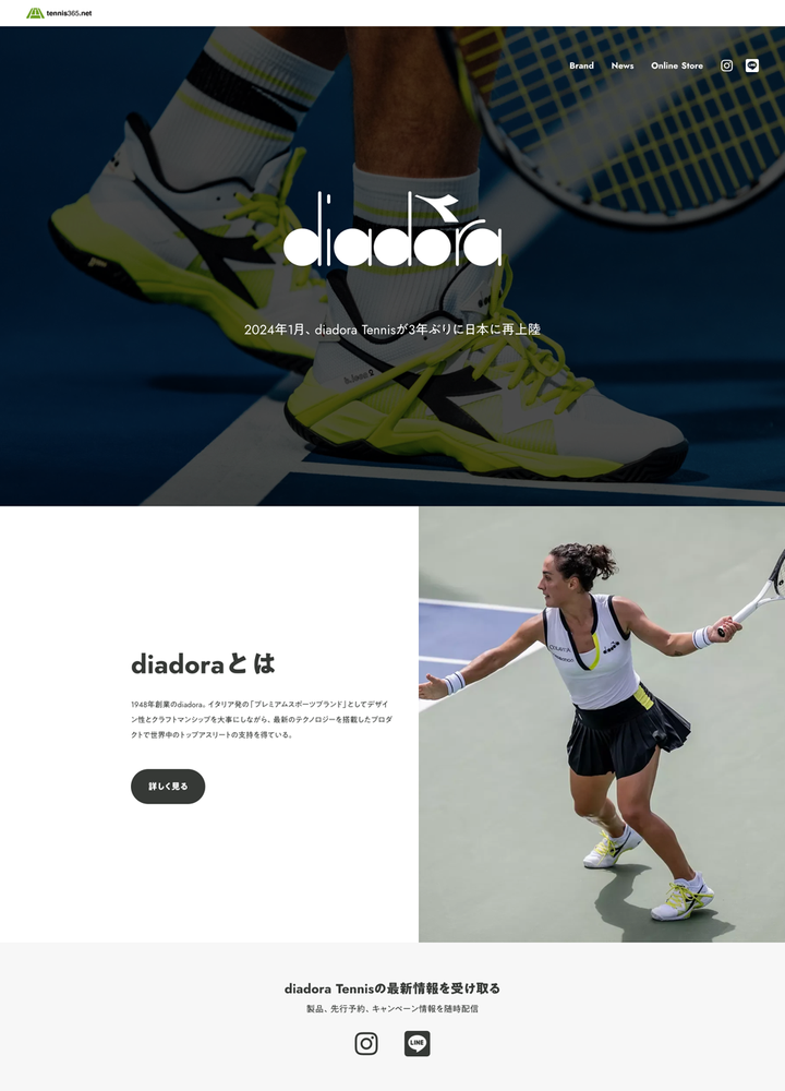 日本に再上陸するdiadoraの公式ウェブサイトを制作。