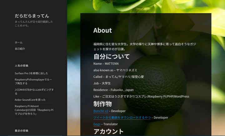 自分のブログ。技術系のネタからどうでもいいネタまで幅広く網羅しています。このブログは自宅サーバー上で稼働しています。アクセス負荷に応じてCDNも導入しており、ある意味一番手の込んだ作品です。