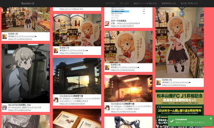 Twitter上に流れるあなたのタイムラインから、画像付きのツイートを抽出してタイル状に並べて表示できるWebアプリケーションです。