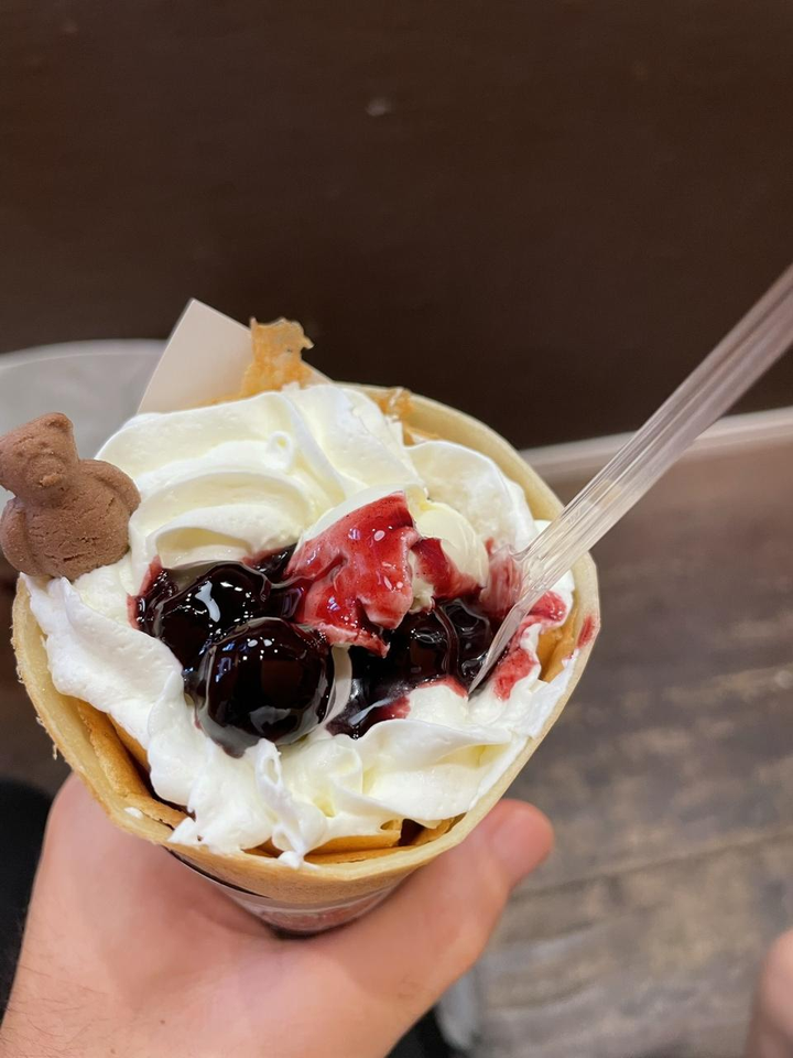 一つの街なのにいくつもクレープ屋さんがある高円寺。 今日はクマのクッキーが乗っているお店に行きました。