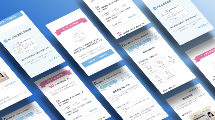 リクルースタッフィングの新規アカウント登録同線のフルリニューアルを行いました。 ・UIのリニューアル ・体験の再設計 ・ビジュアルの刷新 etc..