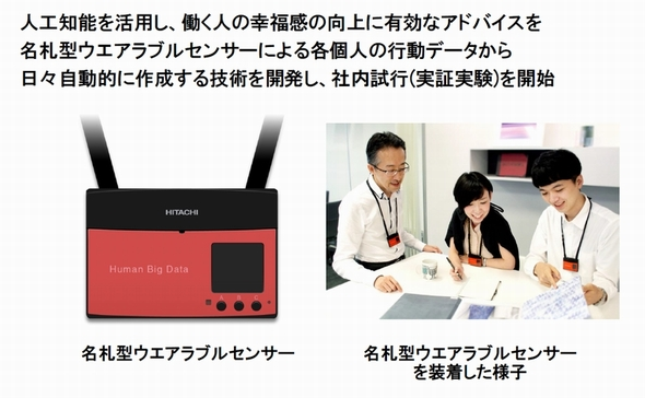 日立製作所は2016年6月、AI技術を活用し、働く人々の幸福感向上に有効なアドバイスを、各個人のデータから自動で作製する技術を開発し、日立グループの営業部門に所属する約600人に対して、実証実験を開始したと発表した。今回、実証実験に参加した2人にインタビューを行った。