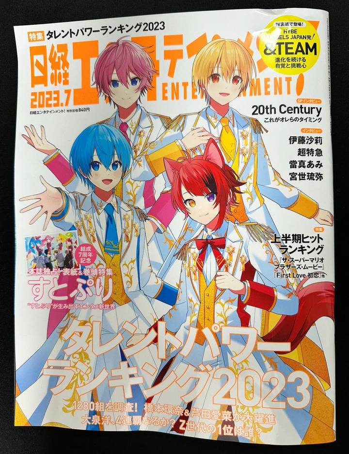 「日経エンタテインメント! 」2023年7月号(W表紙:すとぷり/&TEAM)で、丸々1ページ取材してもらいました