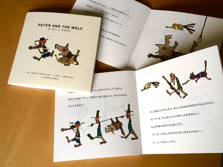 自主制作。所属するアマチュアオーケストラ「セントマーティンオーケストラ」のクリスマスコンサートに来場してくれた子供に配布。 プロコフィエフ作曲の音楽劇「ピーターと狼」をより楽しんでもらえたら、との思いつきから制作しました。