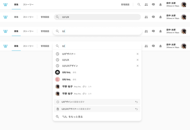 Wantedly.comの検索機能のUIリノベーションを担当。 Text fieldおよび検索結果のUX、情報設計