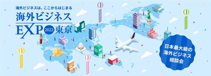 国内最大級の海外進出・海外ビジネスに関する情報が揃う展示会 『海外ビジネスEXPO』とは、海外ビジネスに関するあらゆる情報・サービスが集まる総合展です。 少子高齢化による市場縮小や、経済のグローバル化に伴い、「海外展開」は日本企業の戦略上の優先課題となりました。一方で、言語や商習慣の壁、ブランドの認知度や法律、貿易、パートナー開拓など…「海外展開」のハードルはまだまだ低くはありません。 そこで、『海外ビジネス⽀援プラットフォーム「Digima 〜出島〜」』『オフショア開発.com』『BPO サービス紹介センター』といった、これまで24,000社以上の相談を受け、課題を解決してきた海外ビジネスに関する3つのプラットフォームが連携し、⽇本最⼤級の海外ビジネスイベントを企画しました。2022年までに延べ12開催を数え、総参加者数は10,000名を突破しています。 1日で海外ビジネスに関するあらゆる情報が取得でき、普段出会えない海外ビジネスの専門家と繋がれるイベントです。