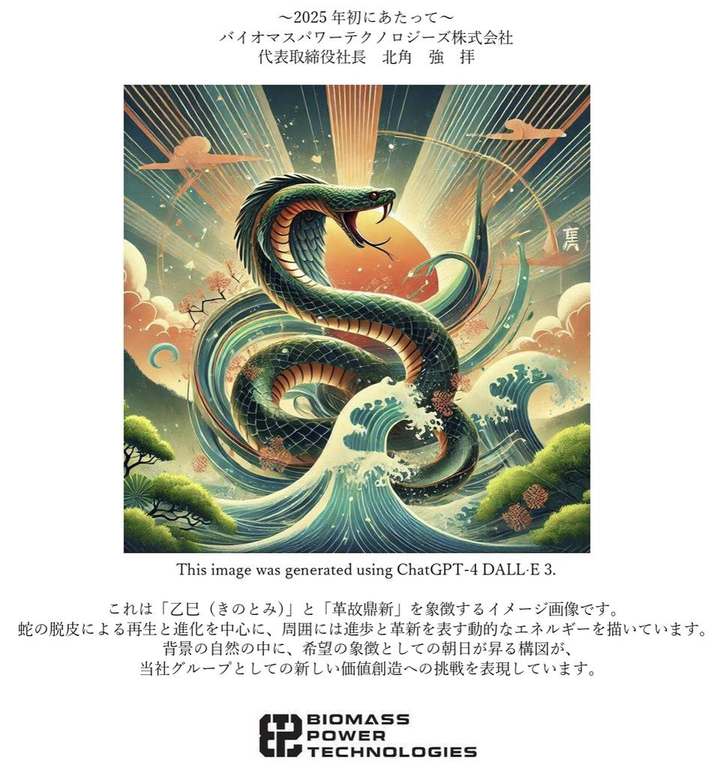 革故鼎新の精神で次のステージへ 2025 年、私たちバイオマスパワーテクノロジーズ株式会社は、創業10周年を迎える節目の年を迎えます。創業以来、私たちは『バイオマスによる林業イノベーション型地方創生エネルギー事業~資源循環型社会の創造~Building the possibilities of Biomass Energy』を経営理念として掲げ、我が国のエネルギー問題という国家的社会課題解決の一翼を担い、脱炭素社会実現に向けた産業構造の転換~森林業と再生可能エネルギー事業を融合した地方創生型カーボンニュートラル新産業の創造~に向けて邁進してまいりました。本年の干支は「巳年(へびどし)」で、十干は「乙(きのと)」、「乙巳(きのとみ)」とも呼ばれます。「乙巳(きのとみ)」は60年周期の干支の中で42番目に位置し、「努力を重ね、物事を安定させていく」という意味合いを持つ年で、蛇が脱皮するように新しく生まれ変わり、進化を遂げるという象徴的な意味合いがあるとされています。この10年間の実績を礎に、新たな変革と挑戦の年を迎えるにあたり、古い制度や仕組みなどを新しいものに革新していくことを意味する「革かく故鼎こてい新しん」という言葉が示すように、本年の干支「乙巳」に象徴される「脱皮」や「再生」の力を胸に、私たちは「革故鼎新」の精神で、これまで築いてきた基盤をさらに発展させ、時代の変化に適応しながら、当社グループの次のステージに向けて、新たな価値を創造していく所存です。私たちは、バイオマス発電事業と林業事業を融合させ、地域内で富を循環させる「エネルギーの森構想」の実現を目指し、ソーシャルグッドでサステナブルなビジネスモデルの構築を目指しています。2022 年度より3年連続で採択された林野庁「新しい林業」経営モデル実証事業、2023 年度から6ケ年事業として採択されたNEDO「エネルギーの森」事業における早生樹育成実証、いなべ市との官民連携による放置森林の大規模整備事業や生物多様性保全事業など、地域経済に根差したバイオマスエネルギー事業者として、地域の森林資源を最大限に活用・保全するとともに、日本林業の再生に貢献し、人と森林・林業をつなぐインタープリターとしての役割を担うべく、引き続き、積極果敢に事業展開してまいります。 さらに、2025年春には、全国初となる完全NON-FITプラントである『パワーエイド三重シン・バイオマス®松阪発電所』を稼働させる予定であります。このシン・バイオマス®発電所は、FIT制度などの国民負担に依存せず、環境や社会の持続可能性を重視しながら、地域における循環経済(サーキュラーエコノミー)を「新たに」「真に」切り拓いていくという想いを込めたビジネスコンセプトである『シン・バイオマス®』を具現化する事業であり、地方創生型カーボンニュートラル新産業の創造に向けた画期的かつ象徴的なプロジェクトであります。私たちは、創業10年目の節目にあたり、過去の成果に甘んじることなく、次の10年に向け、さらに一歩進んだ「革故鼎新」を皆さまと共に実現していく所存であります。本年も引き続き変わらぬご支援とご愛顧を賜りますよう、何卒よろしくお願い申し上げます。 ~2025年初にあたって~ バイオマスパワーテクノロジーズ株式会社 代表取締役社長 北角 強 拝