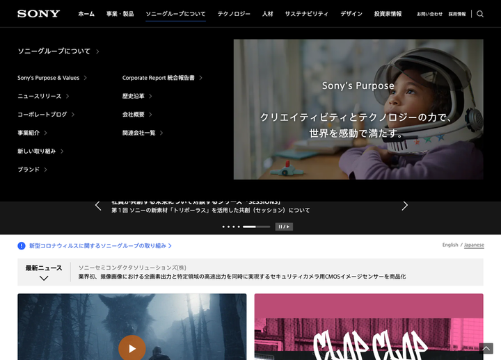 ソニーグループポータルサイトのトップページとグローバルナビのリニューアルにおいてプロジェクトマネジメント兼Webディレクションを担当しました。
