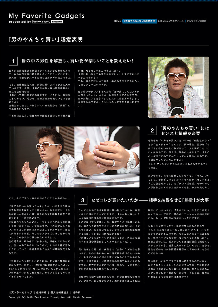 担当 : デザイン こだわりを持つ大人の買い物というコンセプトから、遊び心を持ちつつも意識の高い大人の雰囲気を黒を基調に雑誌風のレイアウトでデザイン